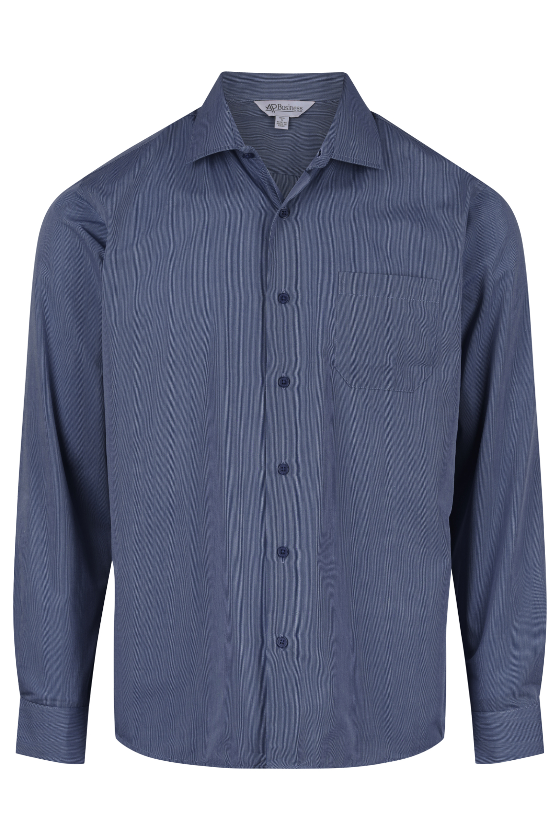 A top stitched collar and cuffs and an angled edge corner on the cuff and the pocket