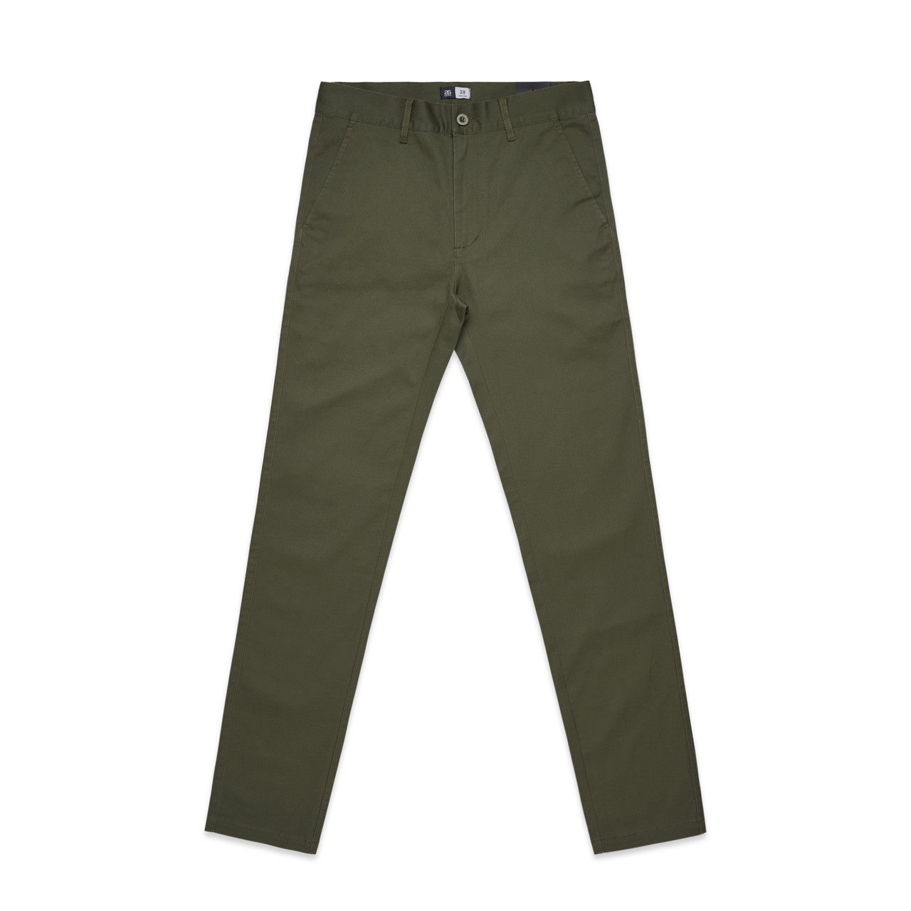 Chino pants, 2 side pockets, jet pockets at back, belt loops on waist, button closure, anti-brass metal YKK zip fly, preshrunk to minimise shrinkage